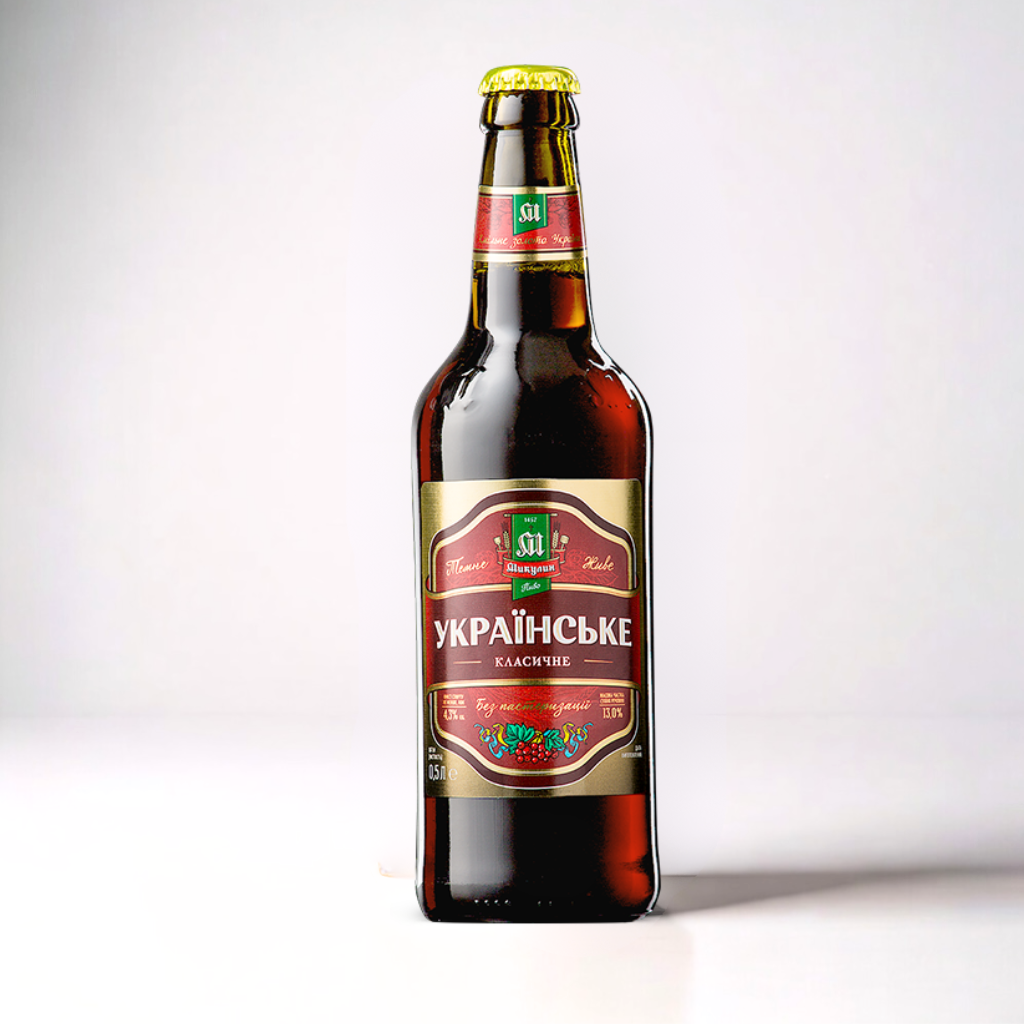 Soft and flavorful dark lager – deep dark brown / ruby color with dense brown head, malty taste with notes of caramel, roasted malt, light chocolate, coffee hints, and gentle hop bitterness. Highly drinkable, balanced and relaxing, with a clean, lingering caramel-malty finish. Dark brown / ruby color – perfect chilled for evening gatherings, barbecues, steaks, dark cheeses, game meats, or as an everyday dark beer (0.5 L bottle – classic single serving for mug or glass).