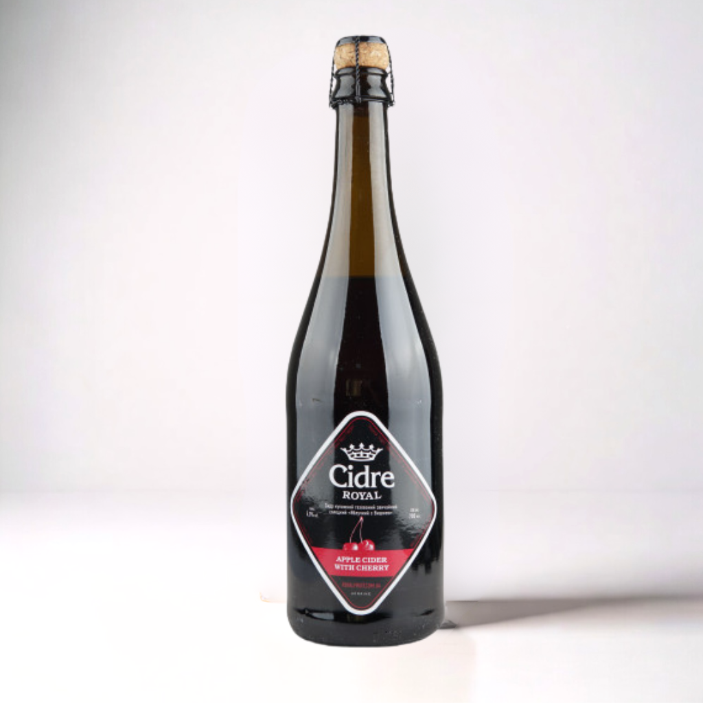 An exquisite fruit cider created from a blend of selected apple juice and ripe cherries, presented in an elegant champagne-style bottle. Through natural fermentation, the beverage achieves a deep ruby color and a rich aromatic bouquet. The flavor is dominated by the juicy sweetness of apples, harmoniously intertwined with the characteristic, slightly tart note of cherries. It is a perfect alternative to sparkling wines—light, refreshing, and full of fruity character. Best served well-chilled in champagne flutes as an aperitif or paired with desserts.